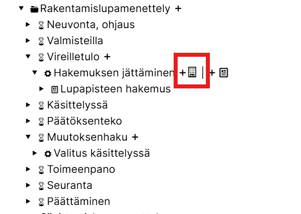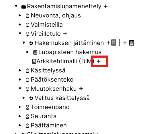 Menettelyn vaiheen kohdalta löytyy uusi kuvake, jolla tietomallit lisätään