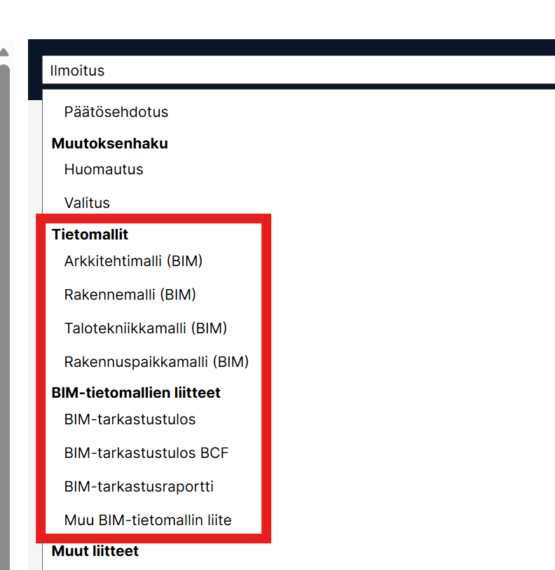 - Muu BIM-tietomallin liite