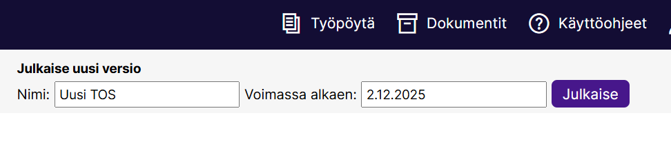 Kun olet tehnyt lisäykset ja metatietojen määritykset, muista julkaista tiedonohjaussuunnitelman uusi versio, jotta muutokset tulevat voimaan.